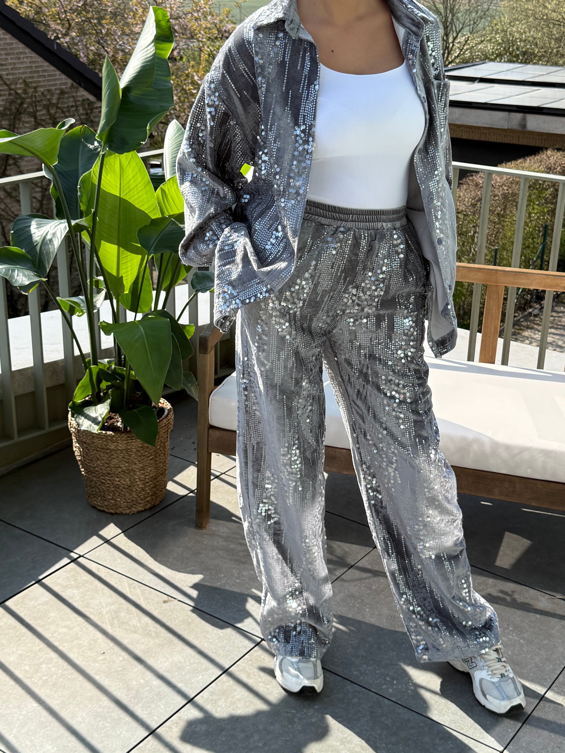 Grijze Ensemble Met Pailletten